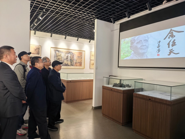 随后,与会嘉宾前往余任天艺术陈列馆参观。馆内陈列了大量余任天的诗书画印作品(复制)、文献资料,还播放着余先生艺术人生的高清影像。余任天之子余胜动情地说:“父亲的艺术根基源于少年时期,希望孩子们从展品中读懂坚持。”