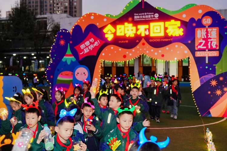 二年级的“一起玩吧”今夜不回家活动同样精彩纷呈。班级拔河比赛的呐喊声、帐篷美食的欢笑声、联欢音乐会的歌声、草坪电影下的惊叹声,交织成这个夜晚最动听的乐章。星光下,同学们互帮互助、尽情欢笑,在集体活动中体会陪伴的温暖,践行“同窗同乐”的真谛。