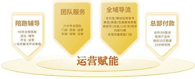 2、0垫资快结算:总部高效结算,合作方全程0垫资,10分钟快速到账,资金周转灵活。
