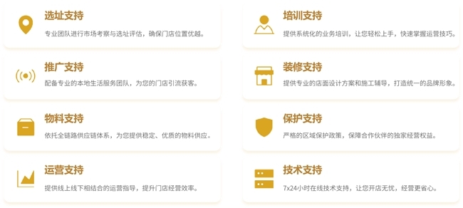 覆盖选址、开业、运营等全流程专业辅导,六大专业团队(门店、回收、运营、科技、财税、法律)全程跟进。