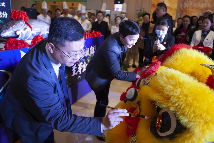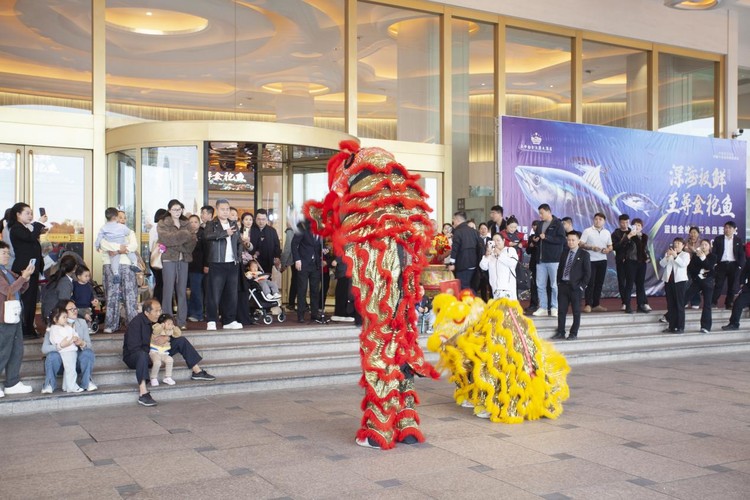 当天下午17点08分伴随着现场舞狮的鼓声开渔仪式正式开始,舞狮表演的融合也彰显了酒店对于这顶级食材的尊重又蕴含着对食材的敬畏与专业的匠心,随着酒店领导的点睛与剪彩并伴随着现场宾客的掌声,开渔仪式的气氛正式到达顶峰。