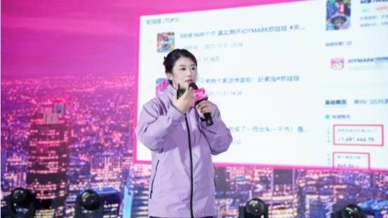 首席运营官李总系统展示了JOYMARK在2025年取得的突破性成果:品牌全年曝光超50亿+次,主动搜索量达8.35+亿,稳居多平台休娱带货榜单全国第一。官方直播GMV突破2.4亿+,其中国庆单节线上销售额高达1.2亿+。线下拓展同样迅猛,“开店即爆”成为常态,多店首月销售额突破100万+。此外,2025年JOYMARK的私域建设成效显著,会员规模已达1000万,复购率50%,社群覆盖130万人,积分兑换总额达1.19亿,兑换人数超100万。